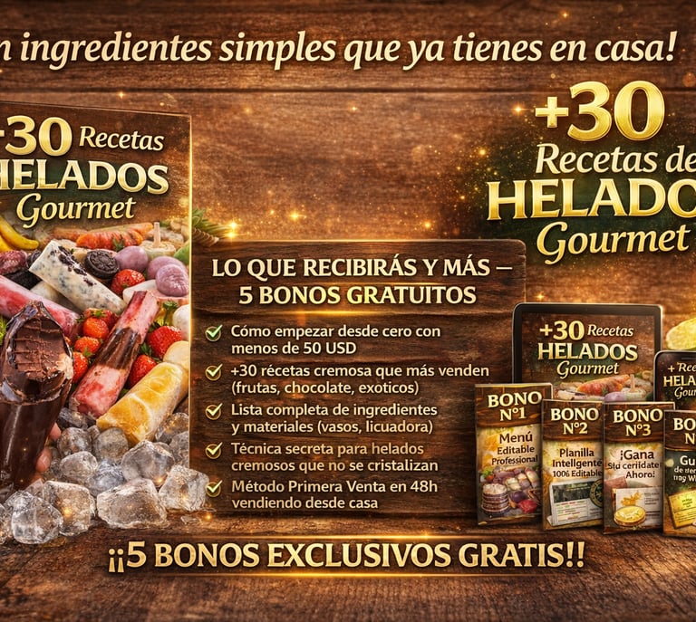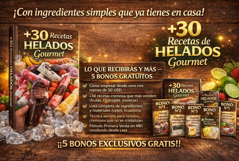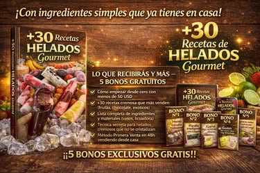 HELADOS GOURMET PRO Es la guía visual paso a paso que muestra cómo crear, presentar y vender helados que conquistan a primera vista y aumentan tus ganancias.